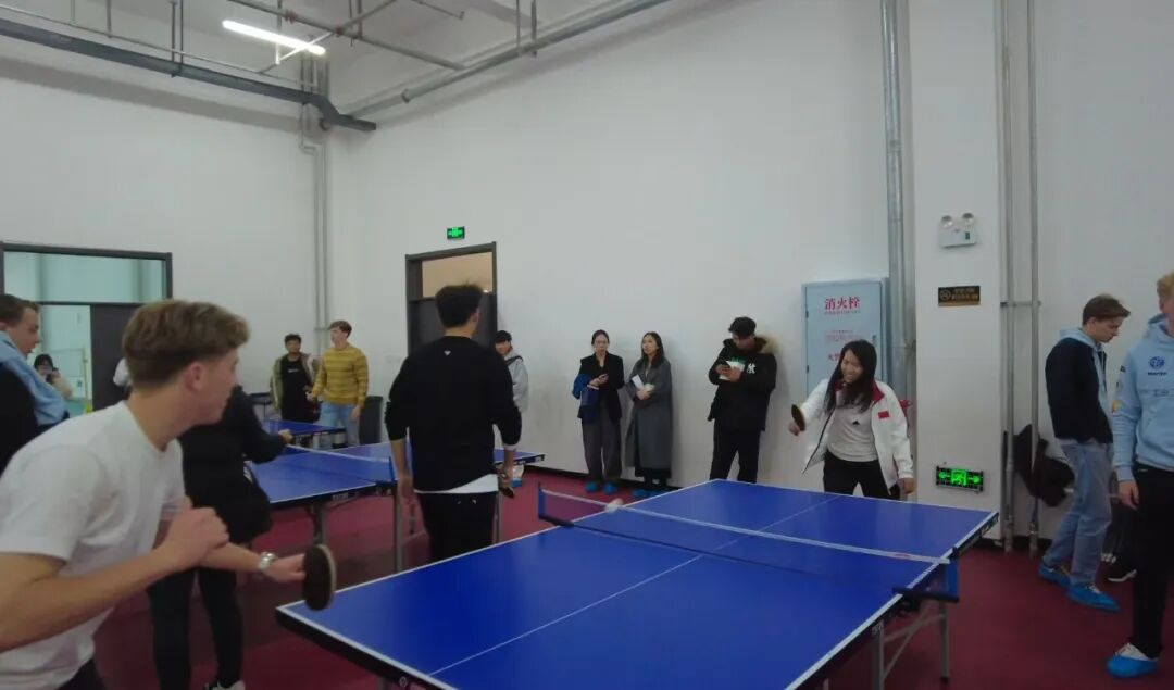 走进体育馆,武术体验点燃跨文化互动热情。体育教研部刘博文老师结合基础招式,讲解太极拳“刚柔并济”理念与长拳要领,从抱拳礼寓意入手,手把手指导站姿、出拳推掌,助代表团感受武术韵律力道。随后双方展开乒乓球友谊赛,体育教研部主任谭波介绍校园体育活动,展现“以体育人、以体促融”思路。荷兰代表团称,此举让其感受中华传统文化,体会“文化无界”,为协作添注脚。
