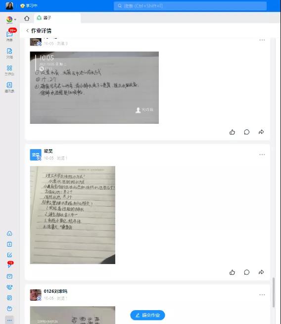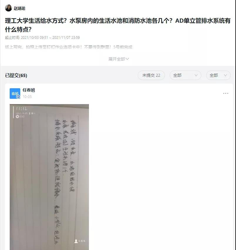 在钉钉群中发布视频,通过钉钉作业功能发布作业。可以详尽掌握每一位同学观看视频情况以及作业完成情况。