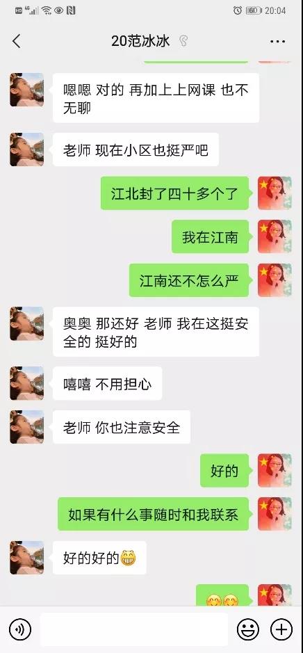 此外在这次疫情中,有个别学生被单独隔离,在上课过程中更要多关注他们,除了课上多提问,课下也尽所能关心他们。得知他们虽然处于隔离中,但是情绪很好,并且通过上课学习记笔记、完成作业很好地度过了隔离期,为师也很欣慰!