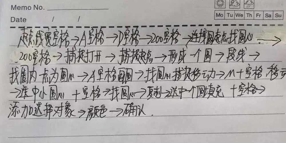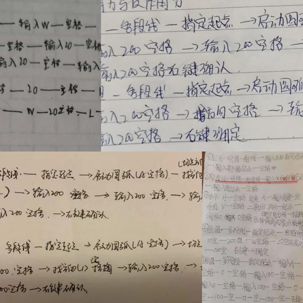 6.《土木工程CAD》、《工程CAD》这样的课对于没有电脑的特殊同学,要求其将每个练习图形的命令流书写出来,以便后续练习参考。