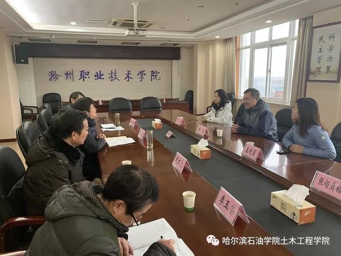 2020年1月7日,欧博abg游戏登录入口副校长胡文带领土木工程学院院长盖晓连、副院长于冰、张佰真铭3人赴滁州职业技术学院进行考察交流。滁州职业技术学院校党委委员、副校长江洁,建筑工程学院书记刘文元、建筑工程学院副院长张国富热情接待并组织召开座谈会,开展工作交流。