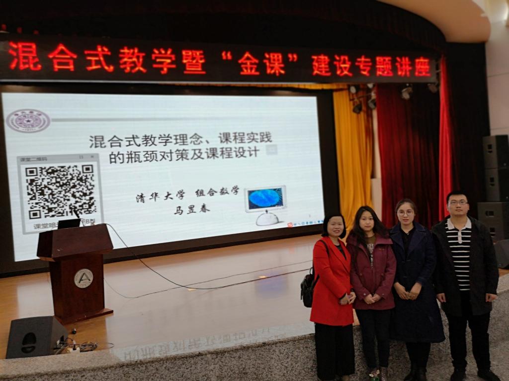 为深入学习“全国教育大会”和“新时代全国高等学校本科教育工作会议”的会议精神,贯彻落实教育部发布的《关于加快建设高水平本科教育全面提高人才培养能力的意见》(新时代高教40条)和2019年陈宝生部长在“全国教育工作会议”上的讲话精神,积极响应教育部《教育信息化2.0行动计划》(教技[2018〕6号),“落实、落实、再落实”,以智慧教学推动信息技术与教育教学深度融合,全面提高高校人才培养能力和质量,助推中国高等教育变轨超车。由东北农业大学主办的“混合式教学暨‘金课’建设”专题讲座于4月25日在东北农业大学顺利举办。我院教师姜涛、安晓星、肖红、李永泽参加了此次讲座,听取了特邀专家的报告。专家们分别就“启发、挑战、思维-《组合数学》混合式课程建设探索”与智慧教学助力金课建设等方面内容进行了精彩的报告。