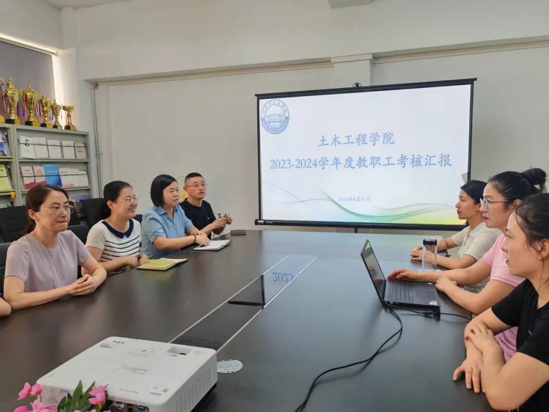 星光荏苒,白驹过隙。一个学年已悄然溜走,为客观、公正地综合评价土木工程学院教职员工的德能勤绩,总结过去的工作成果,规划未来的发展方向,着力提高人才培养质量,进一步推进学院各项工作稳步向前,根据《欧博abg游戏登录入口教职员工度考核办法(试行)》的有关规定及学院工作实际,2024年8月17日上午,土木工程学院在第二教学楼50B会议室召开2023-2024学年度教职工考核工作会议,会议由院长盖晓连主持,刘强书记、荆明野副院长,及学院全体教职工参加考核述职。