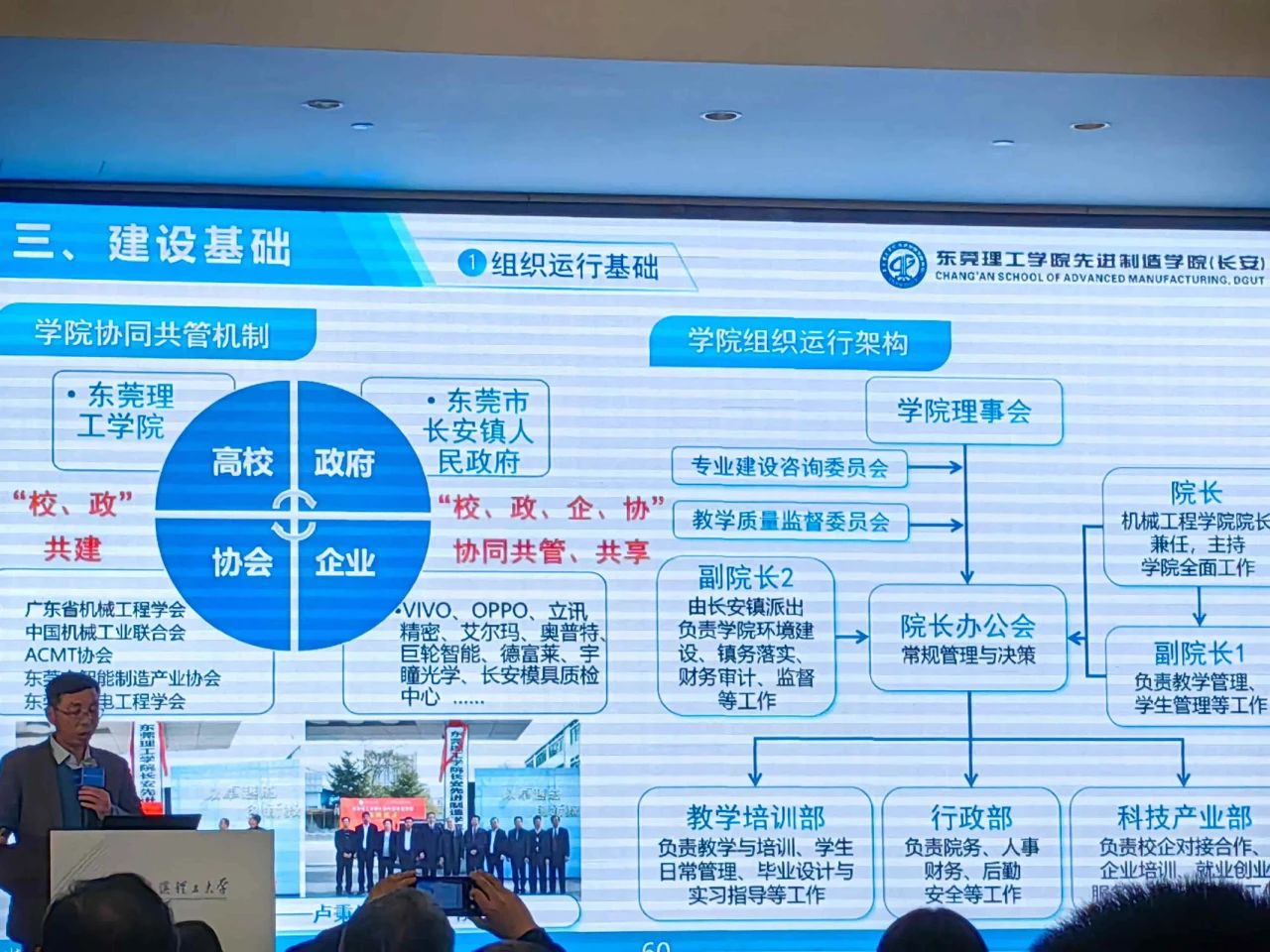 论坛上,多位专家学者进行了精彩的报告。东莞理工学院的黄辉宇教授首先分享了东莞理工学院在现代产业学院建设方面的实践与问题思考,为与会者提供了宝贵的经验和启示。随后,东软教育科技集团的赵凌云部长作了题为“新工科背景下产业学院建设探索与实践”的报告,他详细阐述了新工科背景下产业学院的建设路径和具体措施。