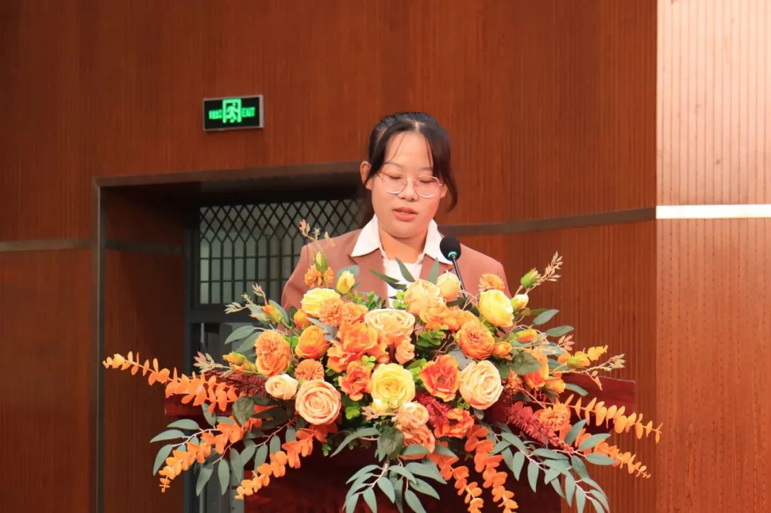 典礼上,2022级工程管理二班的刘天宇同学作为在校生代表发言,她分享了自己的求学经历,希望新同学们尽快适应新的环境,养成良好的学习习惯和生活习惯,调整身心状态,以最饱满的精神面貌迎接大学生活。在老师们的教育引领下,传承土木精神,勇于创新,追求卓越,度过充实多彩的大学生活。