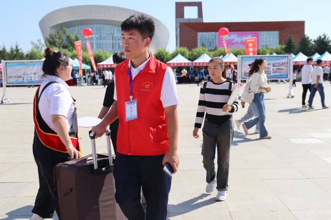 在迎新工作中,学院全体工作人员有条不紊地核实新生身份信息、扫码报到、发放寝室钥匙,并为每一位新生发放了学院精心准备的“相遇礼”。