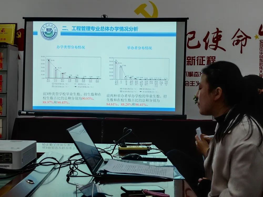 会上,各系主任先针对本专业当前的大环境进行系统分析,运用近年来各高校新增及撤销专业的数据变化、毕业生就业、薪酬等情况,展示行业发展趋势;又就本学院各专业的在校生人数、专业教师人数、副高级以上职称教师人数、当年专业招生人数和第一志愿报考率、毕业生初次就业率等相关数据,分析现阶段面临的困境并深入探讨解决办法。