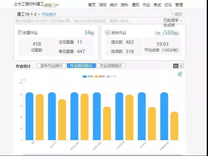 授课注意总结,提示学生学习重点,有助于学生记录有效笔记,学生会对本节课内容加深理解。讲完教学内容在学习通中发布作业或者测试,设定发布和截止时间,作业批改及时有评阅,发放作业有提醒,对于网络问题未能及时上交作业的学生给与延时。再结合些习题的讲解,测试和作业,检验学生的学习掌握情况,有助于知识的消化,对于共性问题及时线上解答,有效闭环。