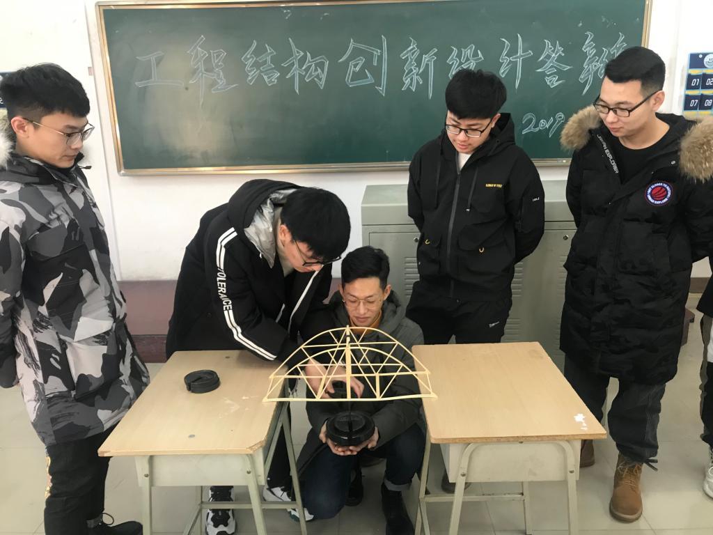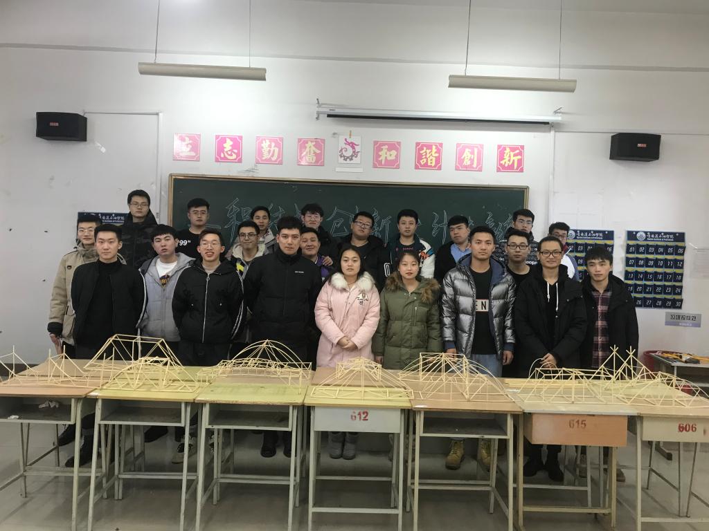 为深刻贯彻OBE教学理念,进一步激发学生的工程结构创新意识,培养学生的创新思维、团队协作和实践能力,加强学生之间的交流与合作,提高人才培养质量,营造校园科技文化氛围,土木工程学院2017级土木工程专业(道桥方向)开设了为期1周的《工程结构创新设计》实践环节,并于2019年12月20日在主教602教室进行了加载试验与小组答辩环节。土木工程学院教师于姜涛、刘洪瑞作为本次答辩的评委。