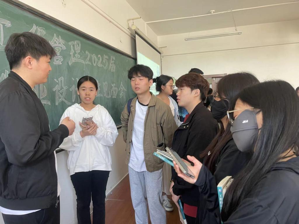 最后,学生与指导教师见面。通过面对面沟通的方式,学生将一些关于毕业设计的疑问积极向指导教师请教,指导教师也针对同学们提出的问题都进行了详细回答,为学生未来的毕业设计撰写打开了良好的开端。
