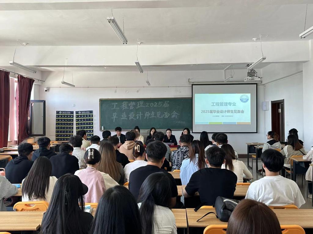 欧博官网2025届学生毕业设计工作已启动,为更好的开展毕业设计工作,便于学生理解毕业设计深层次含义,以及加强指导教师与学生之间的沟通,我院工程管理专业于2024年5月23日中午在第二教学楼503教室召开了“2025届毕业设计师生见面会”。由荆明野副院长及工程管理全体指导教师参加会议,此次会议在工程管理系主任何佳老师的主持下圆满完成。