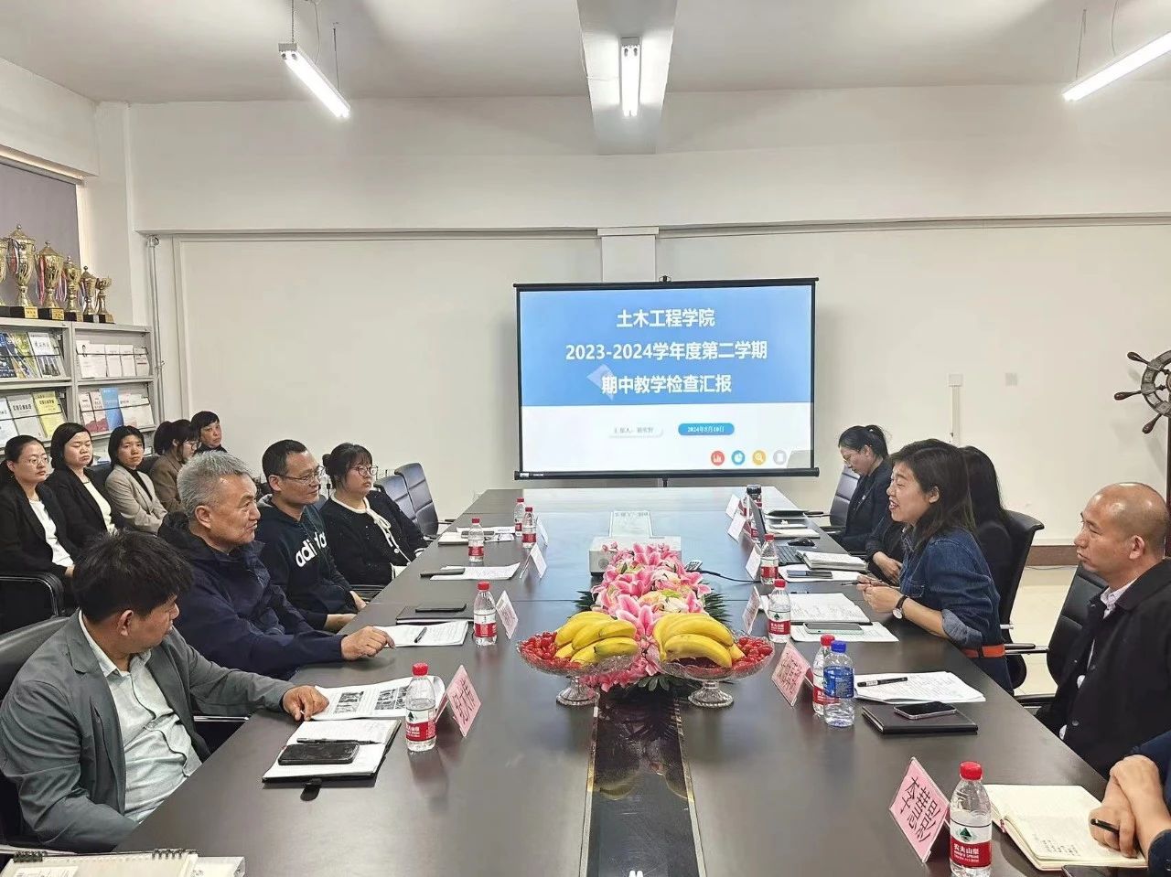 首先,盖院长对检查组领导们的到来表示热烈欢迎。会上,荆明野副院长向检查组汇报了院内自查情况,学院高度重视期中教学检查工作,专门成立工作领导小组并制定检查工作方案,要求全员参与、严阵以待。土木工程学院始终秉承“学为人师,行为世范”的教育理念,班子成员坚持以作风建设为基础,促进教风、带好学风、形成优良的院风。注重抓好各个教学环节,立足常规抓教学,强化实践教学考评管理,创新教研,促进学风。继续开展课堂常态化管理、开放实验室、四级听课,最美笔记评选等活动。为进一步促进学生“3+1”企业综合实习工作有效推进,通过微信公众号进行学生风采展示,并制定水利水电特辑,积极开展校企合作和实习双选会。为加快土木工程学院课程建设,积极开展混合式教学、基于OBE教学理念的研讨会,“以优良教风促学风”为主题的课堂管理方法经验分享会及全国高校教师教学创新大赛经验分享会。