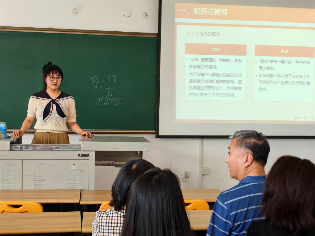 本次试讲环节共分为两部分,分别是5分钟左右的说课,和15分钟的现场教学展示。教师们准备充分,讲解清晰、逻辑性强,借用现下热点话题引入教学,熟练运用ppt课件,展示了专业严谨的试讲内容。