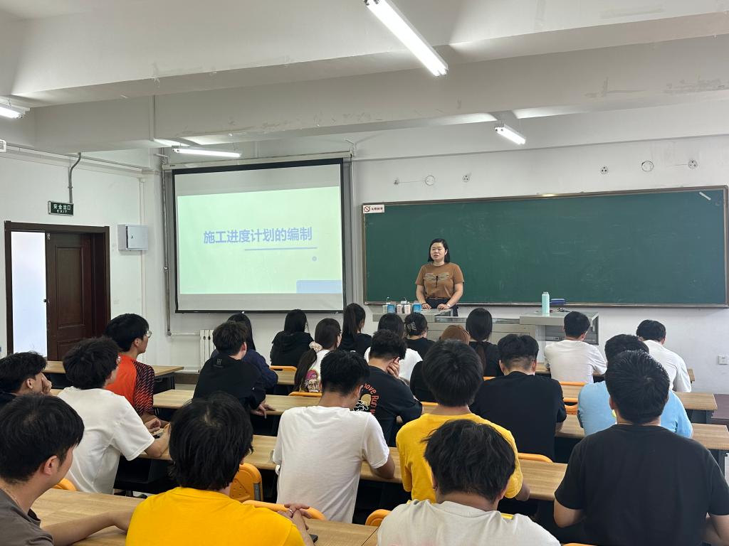 2024年7月1日,肖红老师在二教511教室进行了毕业设计施工进度计划的讲解。首先,肖红老师要求学生深入了解项目概况基本情况、建设目标、规模、结构、技术要求等进行全面了解,收集相关的施工图纸、技术标准、施工规范、类似工程案例等资料,以供计划编制时参考合理确定工程的开工时间。