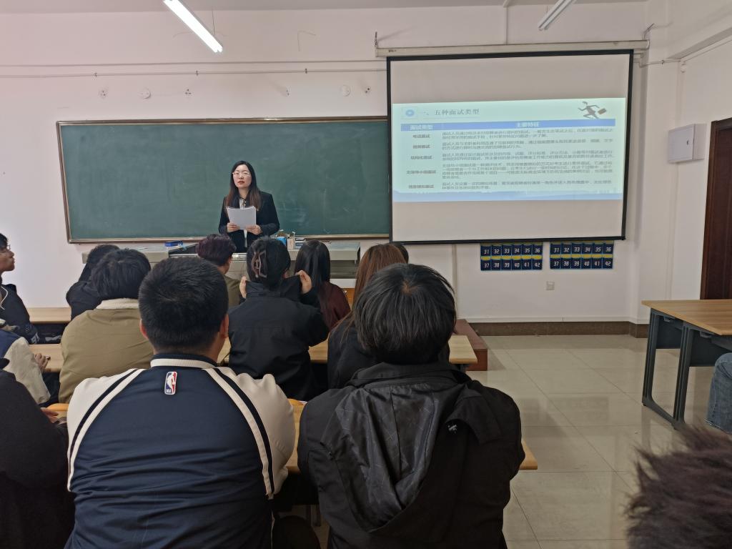 随后,辅导员从面试前心态调整、简历准备、仪容要求等多个方面对讲座的主题进行了全面、深入的讲解。详细介绍了面试的四种形式及其特征,并就常见的面试问题进行提问,以问答的形式提高学生的参与度,同学们积极发言,踊跃表达自己的想法。辅导员提示同学们准备一段精彩的自我介绍,系统学习求职礼仪,做好应聘准备,提升面试竞争力。并提醒同学们提高警惕,学会甄别虚假招聘信息,重视个人信息安全,做好个人信息保护。