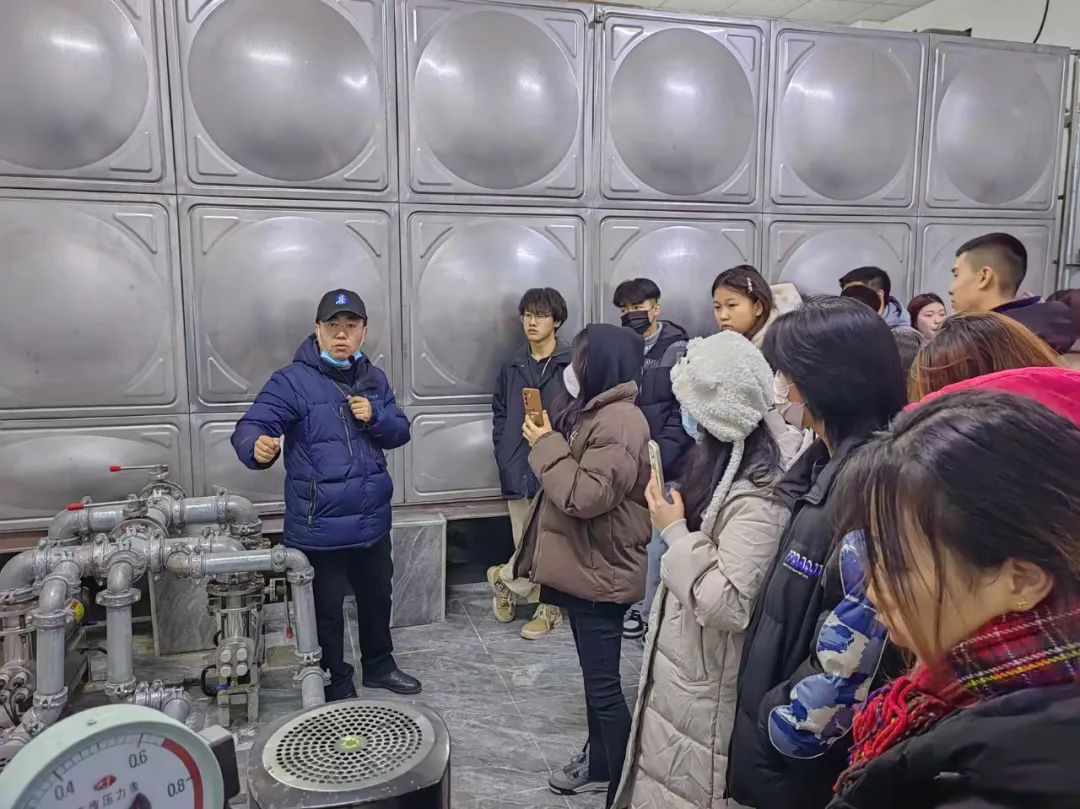第二天来到肇东旅游康养城,参观了换热站及地下车库,企业技术人员详细讲解了换热站设备及车库中的防排烟、消防系统及供热消防管道敷设布置,使学生了解现在常用供热形式,初步理解节能在建筑中的重要性。
