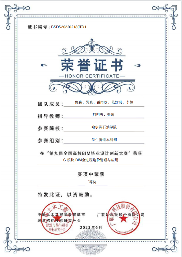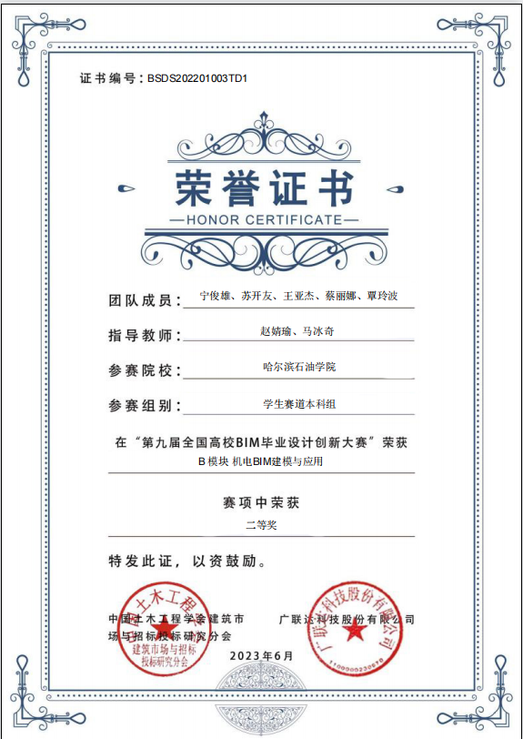 近日,第九届全国高校BIM毕业设计创新大赛落下帷幕。经过激烈角逐,欧博官网土木工程学院院长盖晓连、院长助理荆明野、建环系主任赵婧瑜老师率队指导的3支队伍在全国580余所院校组成的5600余支参赛团队中脱颖而出。经过近五个月的备赛,克服重重困难,分别荣获E模块BIM建设工程项目管理应用全国三等奖、C模块BIM全过程造价管理与应用全国三等奖及B模块机电BIM建模及应用全国二等奖。
