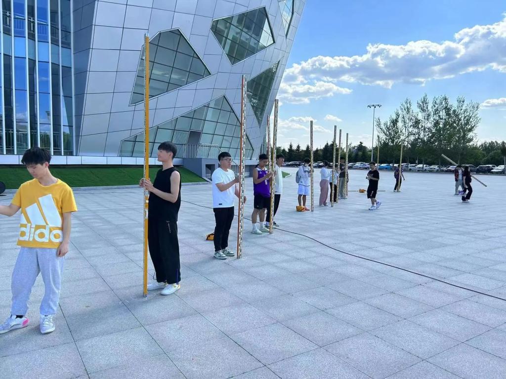 按照大赛安排,各参赛队伍在土木实训馆门前进行了该项比赛的预赛环节。预赛项目为四等水准测量,含测量外业观测和测量内业计算。竞赛内容包含四等水准测量:完成闭合水准路线的观测、记录、计算和成果整理,提交合格成果。