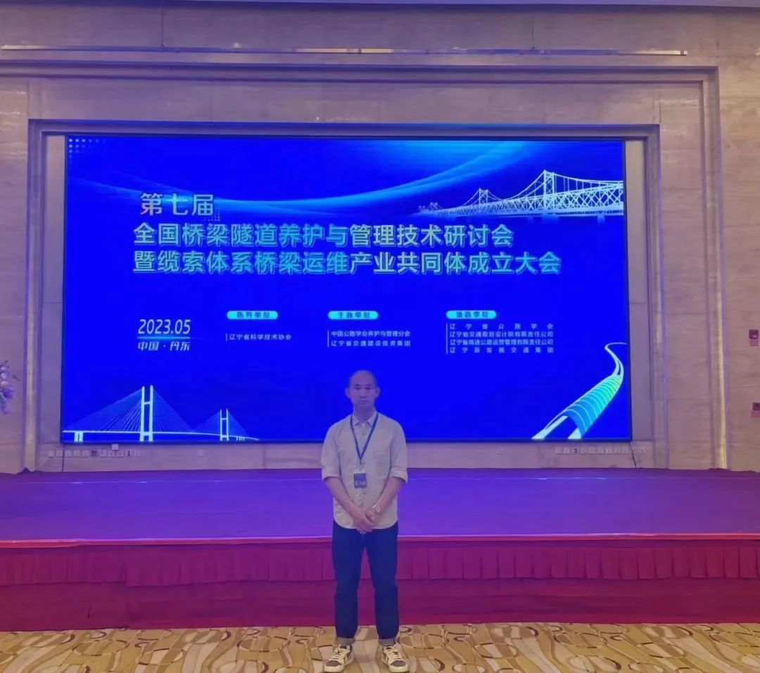 为巩固与提升桥梁隧道安全运营状况、有效提高公路桥梁隧道养护与管理水平,5月11日,由中国公路学会养护与管理分会联合辽宁省交通建设投资集团有限责任公司共同主办的第七届全国桥梁、隧道养护与管理技术研讨会暨缆索体系桥梁运维产业共同体成立大会在辽宁丹东开幕。土木工程学院副院长张佰真铭参加此次会议。