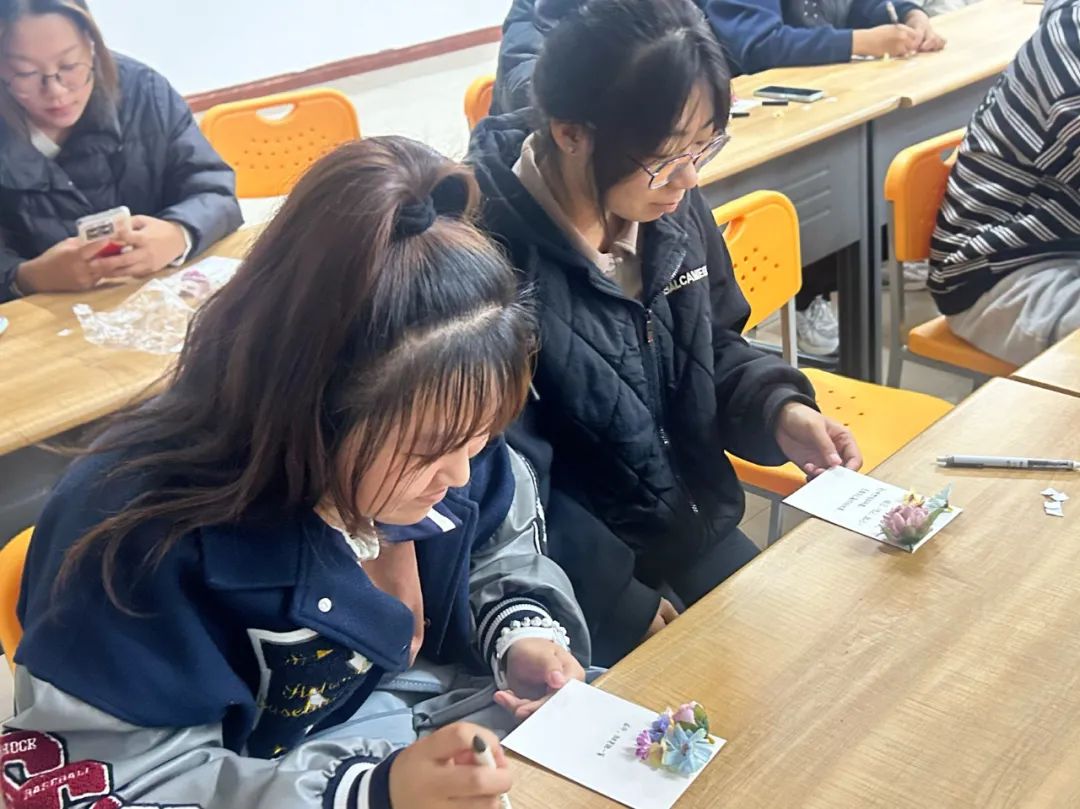 活动过程中,一张张精美的明信片逐渐成型,同学们的脸上洋溢着成就感和喜悦,通过手工帮助同学们发现生活的美好,分享创作过程中的趣事和心得,也增进了彼此间的交流与合作,为大学生活增添了一抹亮色。