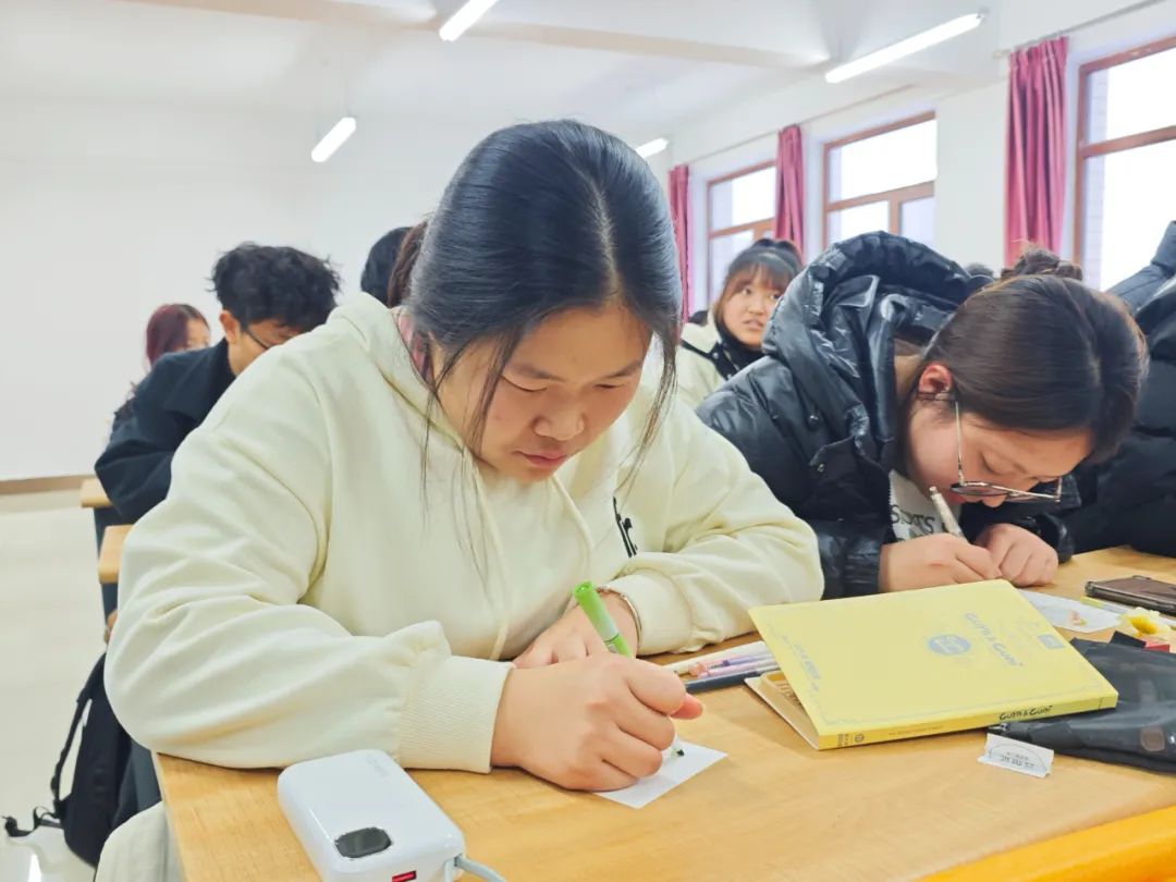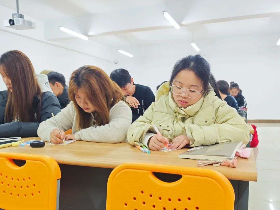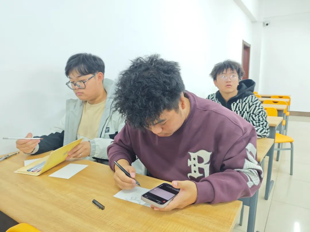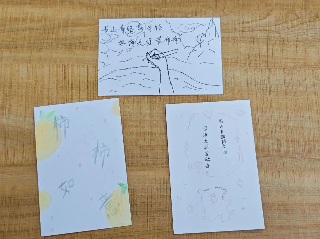在活动过程中,同学们沉浸在自己的创意世界里,各显神通。创作的过程中陈露老师进行指导,对同学们的作品进行了认可与夸赞,让同学们愈发觉得手中的书签沉甸甸的,满是责任与动力。当所有书签制作完成,交换环节充满了欢声笑语与感动。同学们彼此交换着承载梦想与鼓励的书签,每一次赠予都是一份情谊与督促的传递。