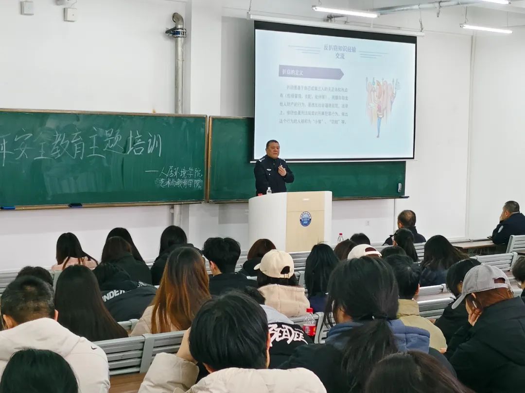 在当今社会,扒窃和电信诈骗等违法犯罪行为日益猖獗,严重威胁着人们的财产安全和社会稳定。为增强学院师生们的安全防范意识,增强自我保护能力,2025年3月7日,人居环境学院与当地警方携手合作,特别邀请哈尔滨市公安局公共交通分局刑侦二中队中队长张孟山、哈北站派出所教导员汪恒勃,举办一场别开生面的反扒反电信诈骗专题活动。