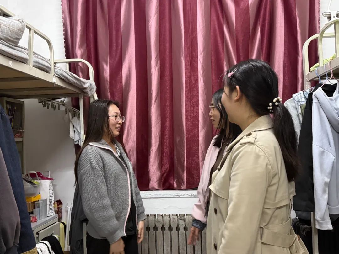 本次检查重点围绕寝室用电安全、卫生状况、晚归、夜不归寝等方面展开。在刘强书记的带领下辅导员们走访学生寝室,细致排查违规电器、插排违规摆放等安全隐患,并对学生寝室卫生情况进行检查。学院党总支书记刘强强调:“安全无小事,寝室是学生校园生活的‘第一阵地’,必须做到防微杜渐,确保万无一失。”针对个别寝室存在的插线板摆放杂乱、垃圾未及时清理等问题,现场提出了整改要求。检查过程中,还与同学们进行了交流,了解他们的学习、生活情况,并听取大家对寝室管理的意见和建议。对卫生状况良好、物品摆放整齐的寝室给予了表扬,鼓励同学们继续保持,发挥榜样作用。