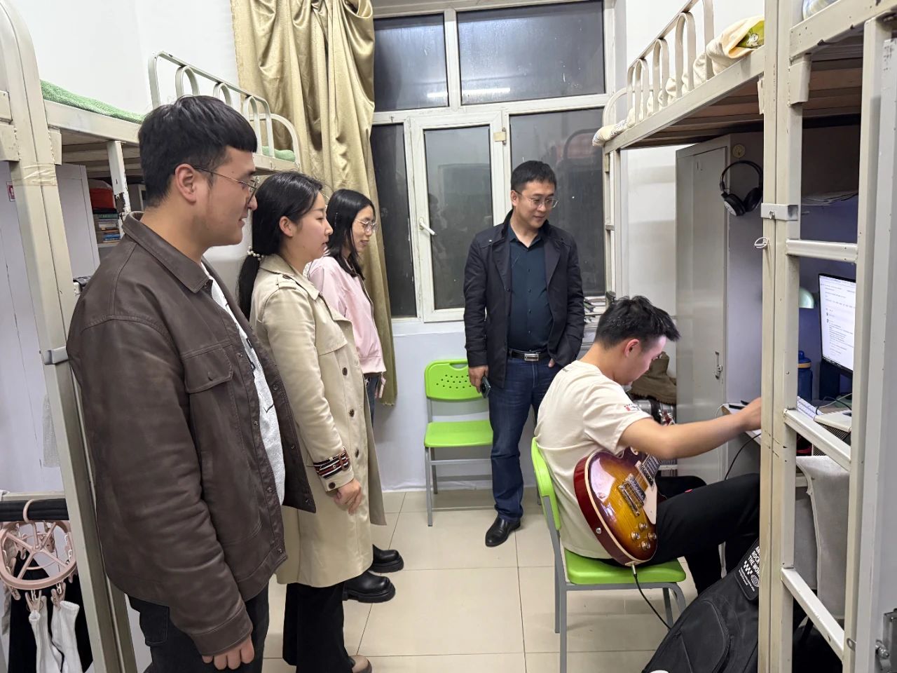 2025年4月26日晚,为进一步加强学生寝室管理,营造安全、整洁、和谐的生活环境,人居环境学院党总支书记带领全体辅导员,对学院所属学生寝室开展了夜间安全大检查。