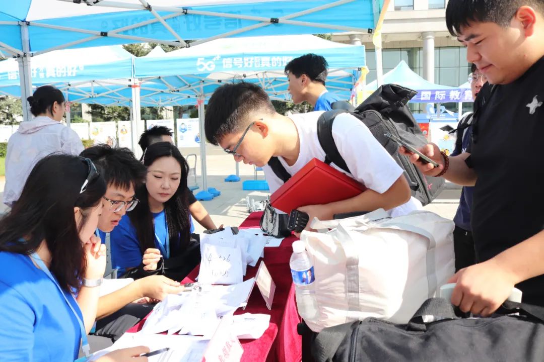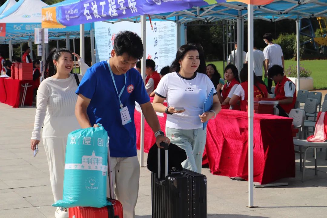 学院院长郑大宇和党总支书记刘强亲临接待点,迎接2025级新生的到来。领导们与新生及家长亲切交谈,为他们介绍校园环境、学院的师资力量、专业特色以及丰富多彩的大学生活,表达学院对新生到来的热烈欢迎。