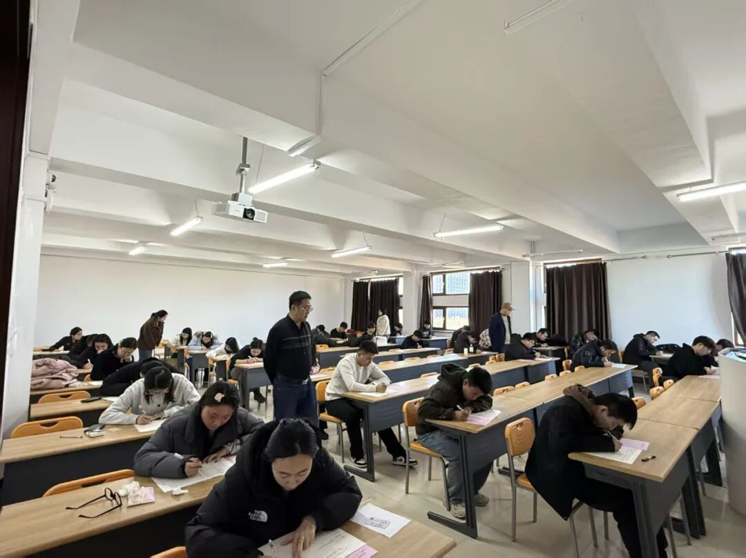 为严肃考风考纪,强化诚信考试理念,营造公平公正的考试环境,2025年11月17日上午10:00,学院院长郑大宇、党总支书记刘强带领2023级辅导员深入各考场开展巡考工作,全程监督考试组织与执行情况。
