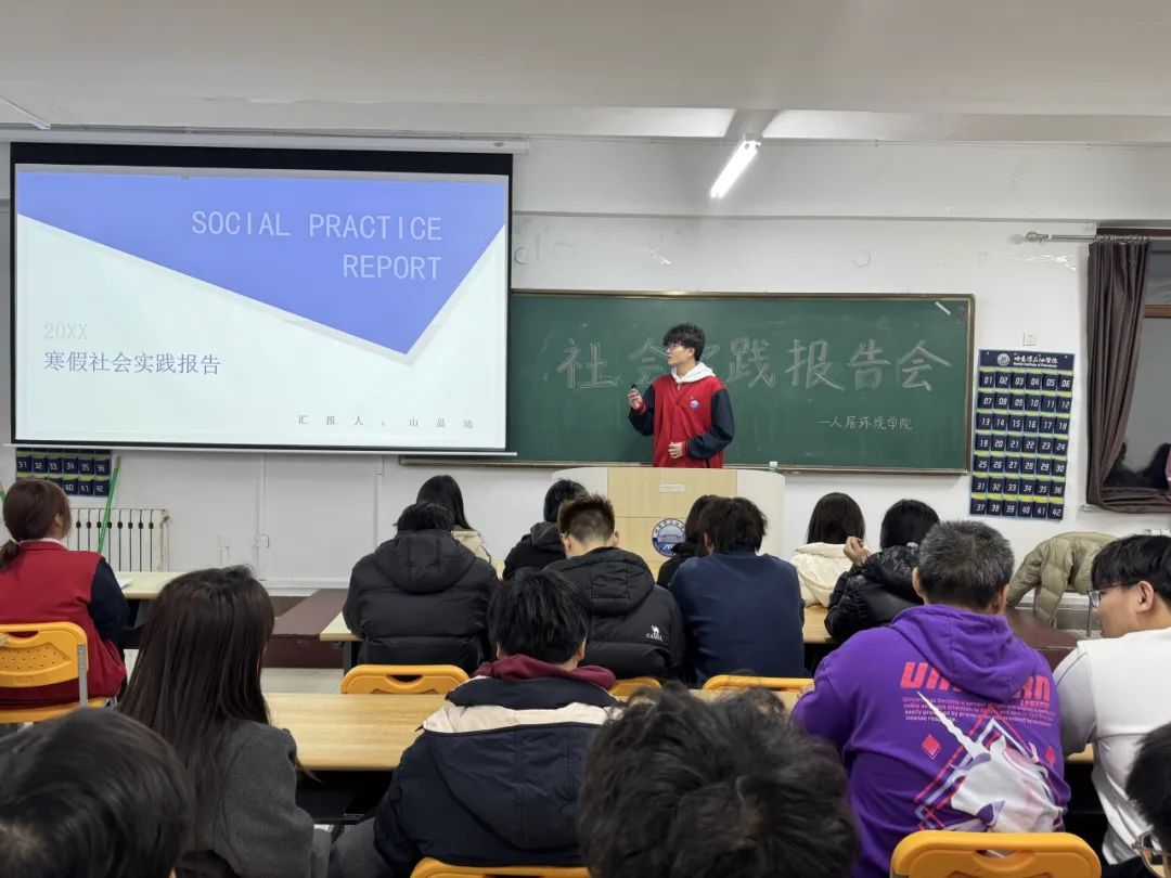为引导我院青年学生到广阔的社会天地去学习、实践、锻炼,深入了解国情省情民情,增强学生的爱党爱国情感,为今后就业打下坚实的基础,人居环境学院青年志愿者协会利用寒假时间,组织学院学生进行了假期社会实践,于2月27日在二教511开展“青春献礼新时代,实践铸就新篇章”社会实践报告会。