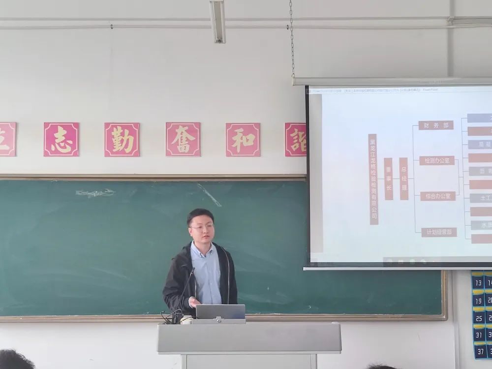 为进一步做好我院学生实习、就业工作,将学生在校学习与企业实习有机结合,同时为用人单位及学生搭建更加广阔的交流平台,土木工程学院于2023年5月4日下午,召开黑龙江龙格检验检测有限公司(哈尔滨分公司)实习双选会。