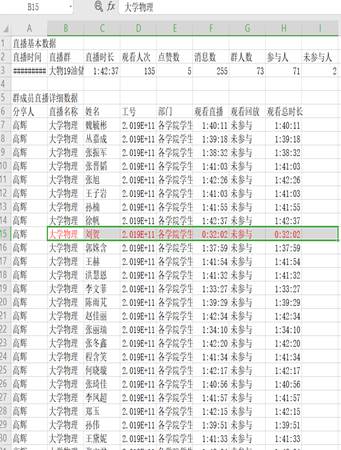 1.为了每堂课及时总结,对作业、笔记、听课情况良好的同学进行记录并课上表扬,增强学生的学习热情。同时利用教学平台强大的数据统计功能,将线上听课情况分享到班级学习群,使学生随时了解自己及班级同学的出勤和上课情况,学生间互相监督,防止学生由于网络上课而产生惰性。
