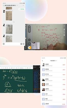 为了预防线上课程卡顿,达到更好的教学效果程,我采取了多种形式相结合教学模式进行授课:“学习通”+“钉钉直播”授课+微信群答疑。在线教学时采取以“钉钉直播”屏幕共享PPT授课为主+“钉钉手机直播”手写补充互动交流(讲解习题或较难理解推导过程)为辅的形式;“学习通”用来推送课前预习和复习资料、完成章节测试题,推送课程相关教学大纲等教学资料;班级微信群兼具答疑解惑,检查笔记,收发重要通知。