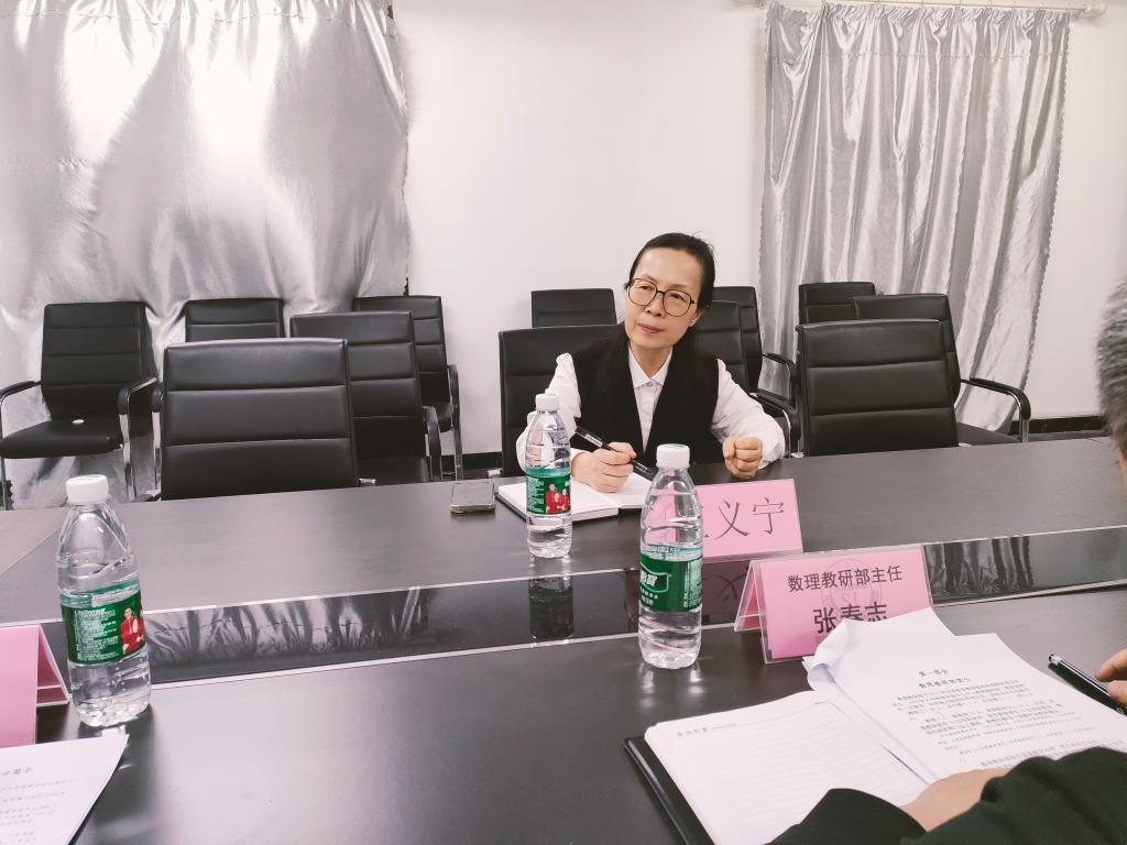 王校长肯定数理教研部继续根据学校建设发展、教育部审核评估指导思想和高校基础课建设意见及课程思政建设的相关要求等,坚持做到教学工作遵循“以应用为目的,以学习专业必需、够用”为度的原则;作好四个服务:(1)服务于不同专业的实际需要;(2)服务于能力培养;(3)服务于素质教育;(4)服务于终身发展。
