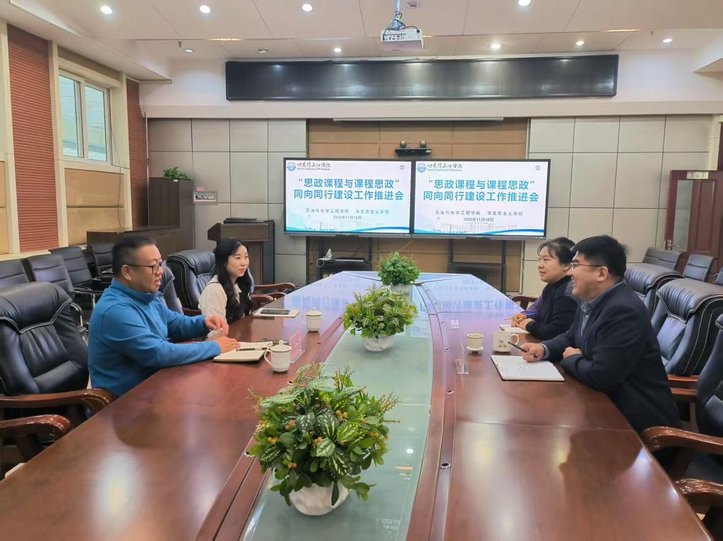 为深入贯彻落实立德树人根本任务,推动思政课程与课程思政协同育人深度融合,2025年11月18日,马克思主义学院院长吴卫东、课程思政指导员代表杨艳一行先后走访体育教研部、石油与化学工程学院、艺术与教育学院,分别召开“思政课程与课程思政同向同行建设工作推进会”,就进一步推进课程思政建设展开深入交流与研讨。