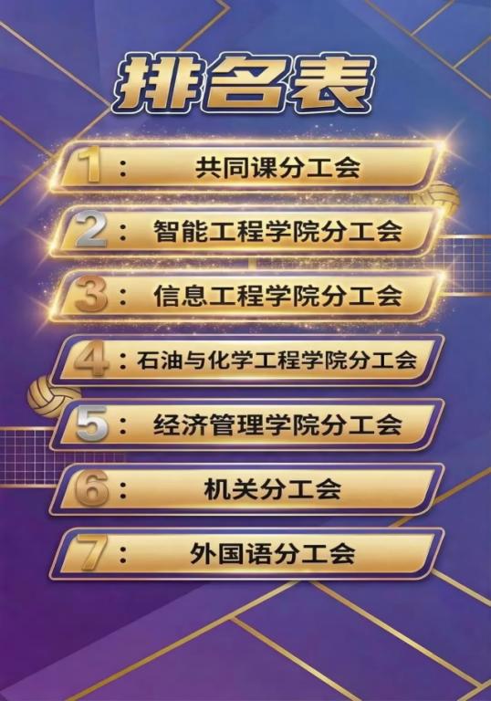 3月25日,由校工会、体育运动委员会主办的教职工男女混合气排球比赛圆满落幕。经过8天的激烈角逐,由体育教研部、数理教研部和马克思主义学院组成的共同课分工会代表队凭借出色发挥,从全校各分工会中脱颖而出,荣获第一名。