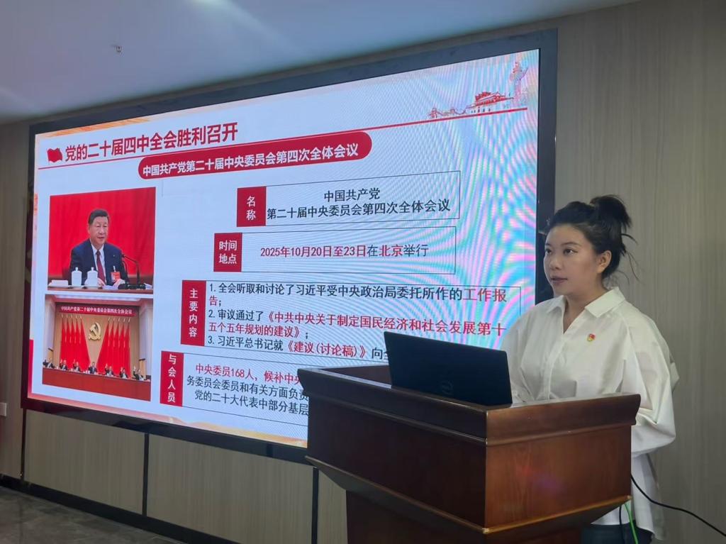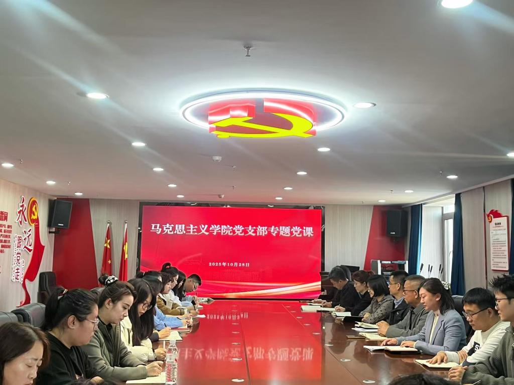 2025年10月28日,马克思主义学院党支部开展专题学习党课活动,深入学习领会党的二十届四中全会精神。本次党课由马克思主义学院李佳阳老师主讲。马克思主义学院党支部全体党员参加学习。