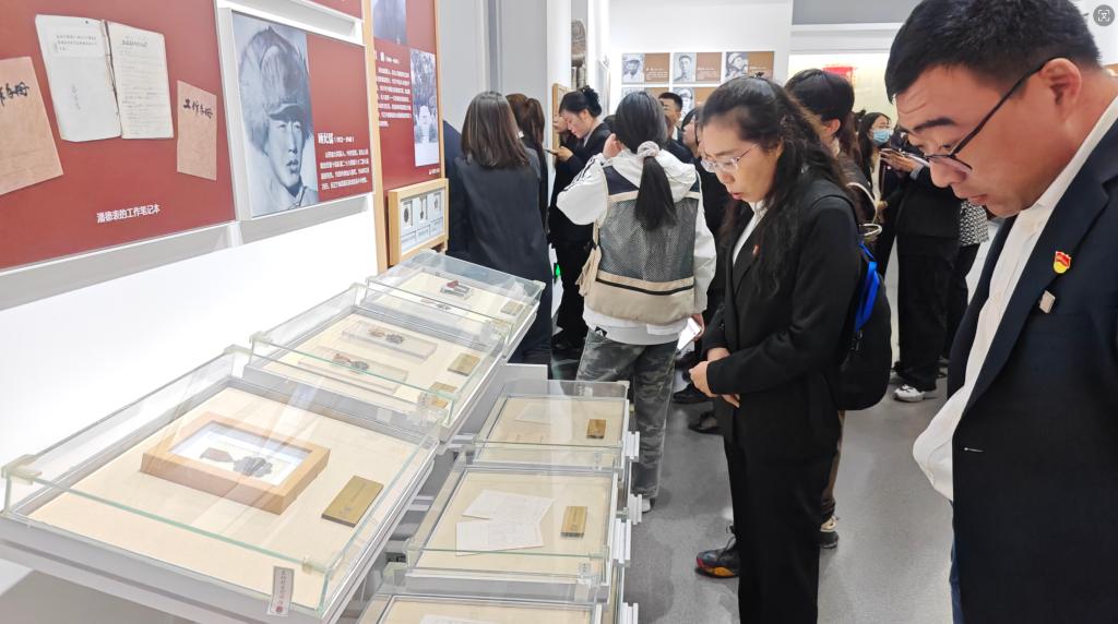 在纪念馆宣誓厅,全体党员肃立在鲜红的党旗前,庄重地举起右拳,重温入党誓词,坚定有力的誓言表达出党员们感悟思想伟力、牢记初心使命的信念和决心。