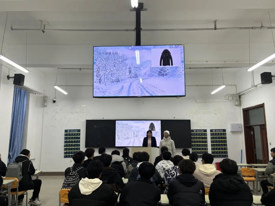 讲座伊始,两位老师介绍了哈尔滨气候的特点、冬季御寒的基本知识和技巧,为同学们提供防寒保暖的方案,如多层穿衣法、选择防风防寒的衣物羽绒服、佩戴帽子围巾手套等防寒必备物品,以及在合理饮食、增强身体抵抗力等方面给予了建议。同时,两位老师也提醒同学们要根据天气变化进行衣物的增添,并为同学们讲解如何应对冻伤。此外,老师们还分享了一些实用的御寒小窍门,如使用热水袋、吃热食、常备暖贴和消毒物品,如有发热情况及时上报就医。