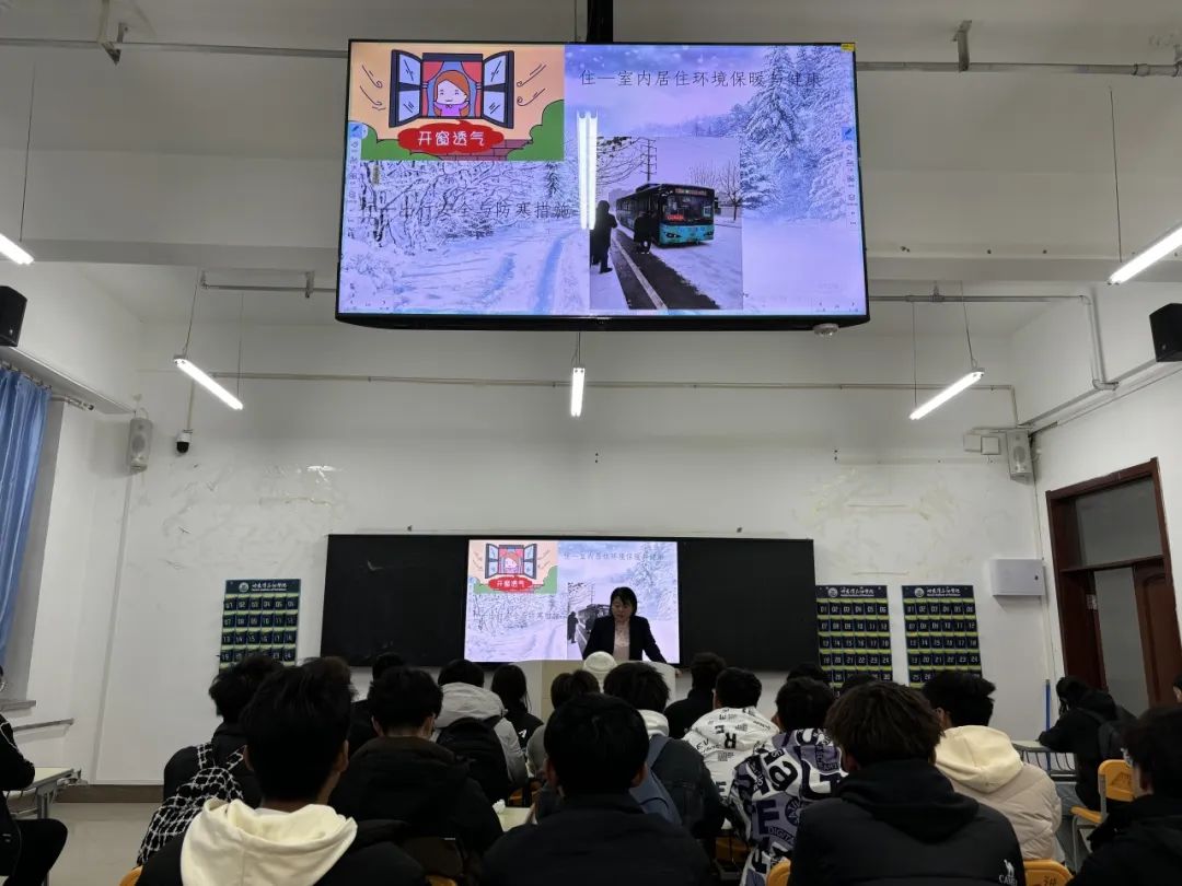 此次讲座还强调了冬季出行安全的重要性。两位辅导员提醒同学们在出行时要注意交通安全,选择公共交通工具,避免在恶劣天气下尽量不要外出,外出游玩应结伴同行等。此外,还介绍了如何在低温雨雪天气中保护自己,小心慢行,防止滑倒摔伤等意外情况的发生。