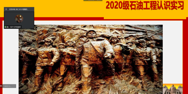教师以本人多年来学习大庆精神、铁人精神心得为基础,把亲身所学、所看、所感传授给学生,抓住学生们内心情感,由学生们的总结发言能深深感受到他们收获很多。为进一步引导同学结合专业学好党的百年奋斗、理解党为什么“能”为什么“行”为什么“好”,为他们人生将面对各种挑战打下坚实的思想基础。