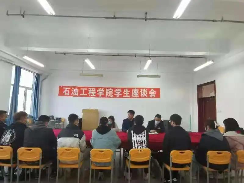 为深入了解石油工程学院学生的思想动态,了解校园封闭管理下的学生在生活、学习中存在的实际问题。倾听学生的心声,营造良好的育人、学习环境,石油工程学院于10月19日在主教702组织开展学生干部座谈会,石油工程学院院长李岳祥、党总支书记刘雁春、办公室主任&教学秘书赵昕及各年级学生代表出席本次活动,