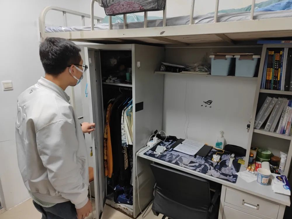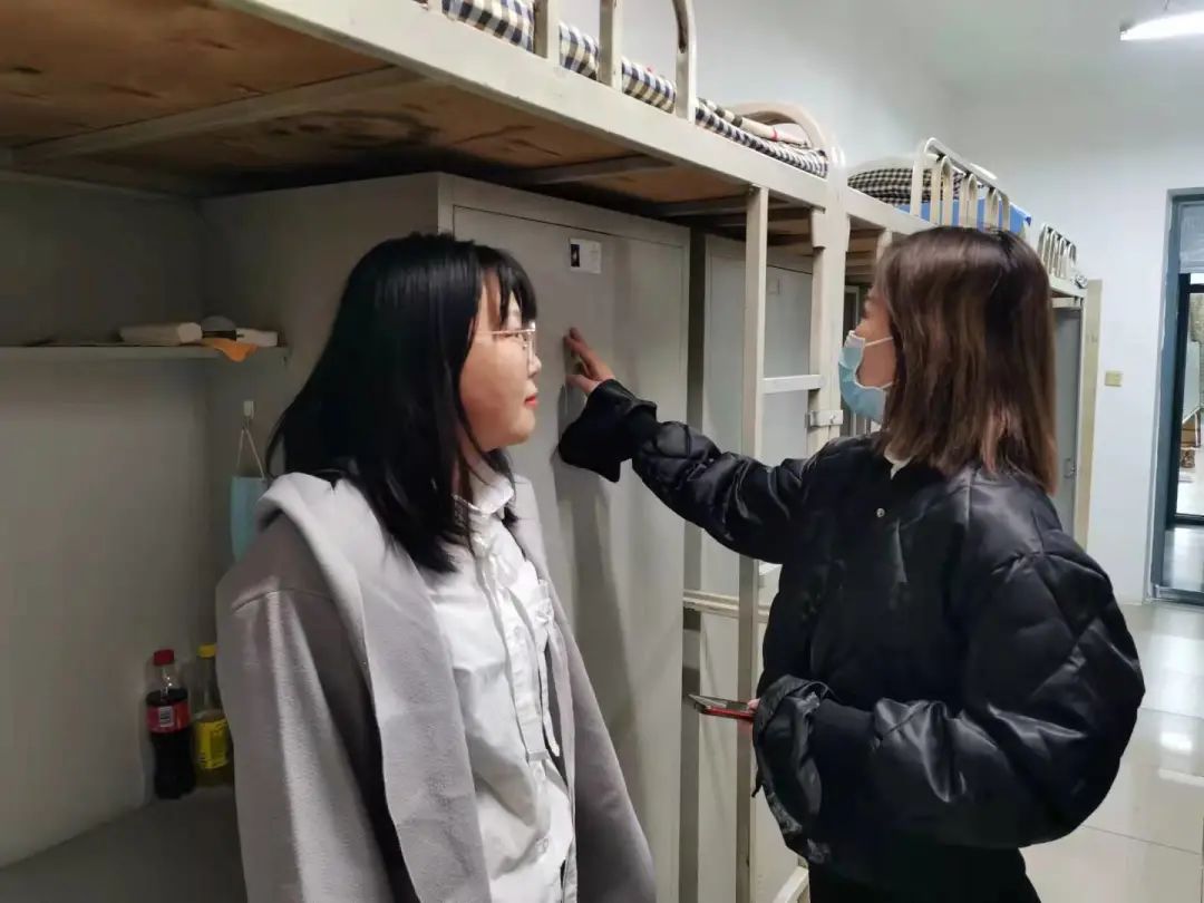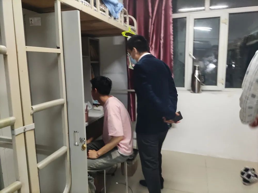 检查过程中,寝室整体状态良好,学生在寝室听课状态较好,卫生达标,学生能坚持每天早晚测温,通风,坚持寝室内消毒,出寝室后,能坚持佩戴口罩,垃圾下楼。同时也发现了学生宿舍中存在的问题,刘书记对于存在的问题进行了记录并提出相应的整改措施:一.加强宣传教育。辅导员利用开班会和检查宿舍等机会,对学生疫情防控要求、宿舍的安全、用电规定。加强文明宿舍的检查,要求责任落实到人,安排好值日生。二.学院从寝室疫情防控,寝室卫生、内务整理、寝室文化和寝室安全等方面加强教育,增强学生的自律意识,激发了学生的集体荣誉感,学生宿舍管理更加规范化、制度化,学生宿舍环境变得整洁、优雅、舒服。