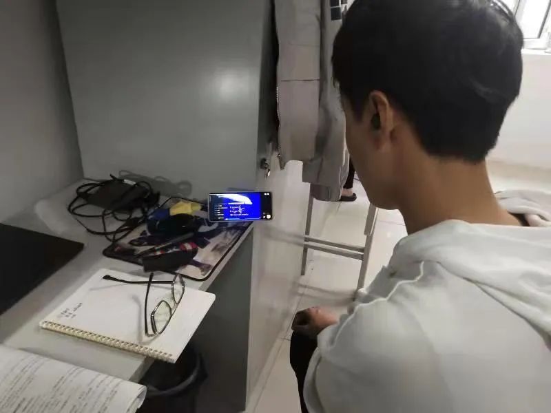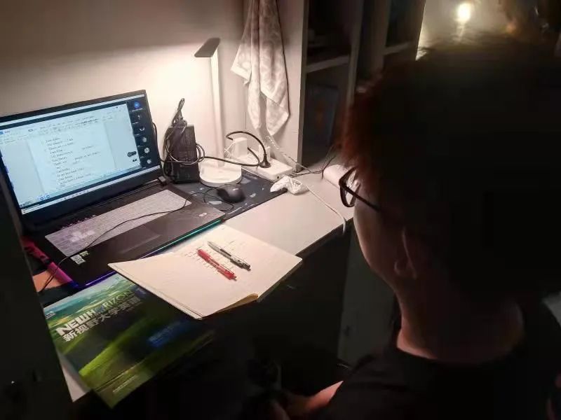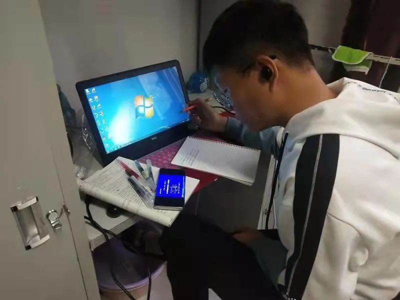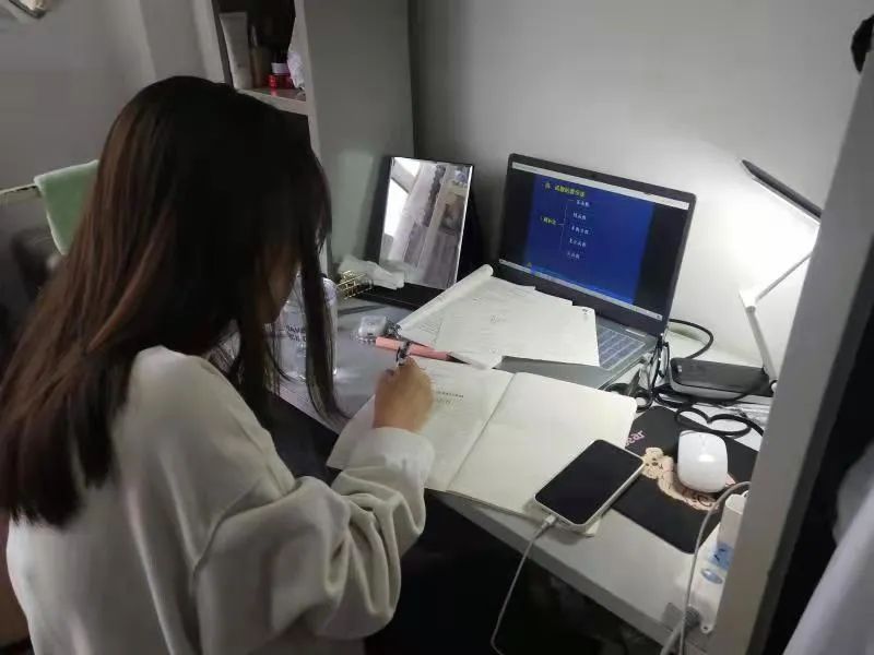 见“屏”如面,看到老师和同学们的头像出现在屏幕上,大家欣喜又激动,这是最值得期待的一刻,来看看认真上课的萌新们,他们准备好课堂用品、穿戴好新衣服,在教室,在寝室,端正严谨地开启第一课,虽说是在电脑上与老师“见面”的,但是丝毫没有给学习效果打折扣。