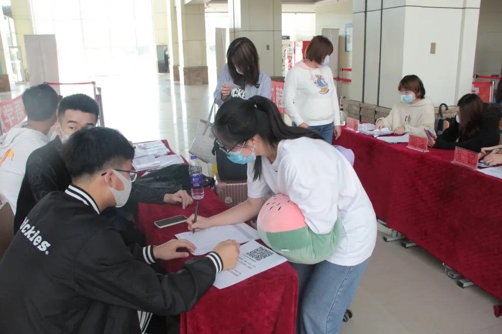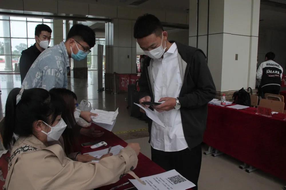 为推动学院党史学习教育落地见效,扎实开展“我为群众办实事”实践活动,充分发挥服务的理念,协助学校做好疫情防控措施,确保学生返校工作的顺利开展。9月11日—9月12日,我院学生2021年秋季学期返校有序进行,为做好同学们返校报到工作,我院志愿者全力以赴,积极服务引导,为同学们提供帮助,有效地维护了返校秩序。我院领导与19级、20级志愿者在做好个人防护措施后,按照学校工作的分工要求,兵分两路,一部分志愿者分配在阳光大厅负责对返校同学进行“两收一领”以及测温消毒工作,另一部分志愿者分布在核酸检测处,在学生进行核酸检测时看管行李物品。