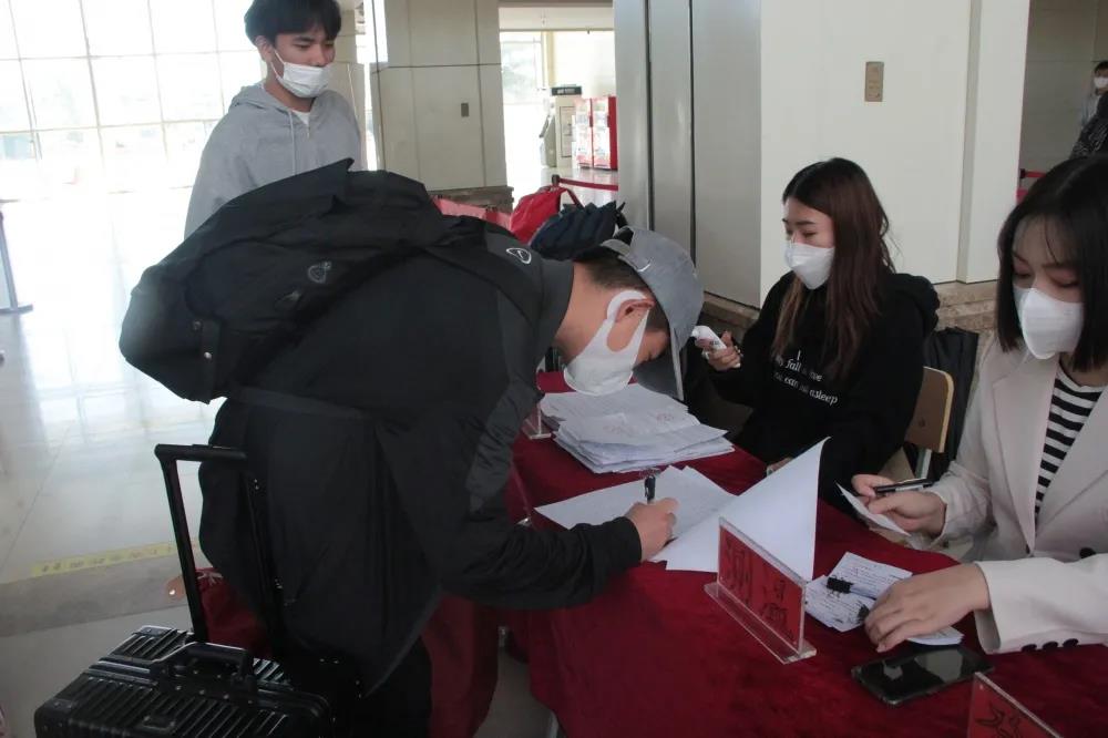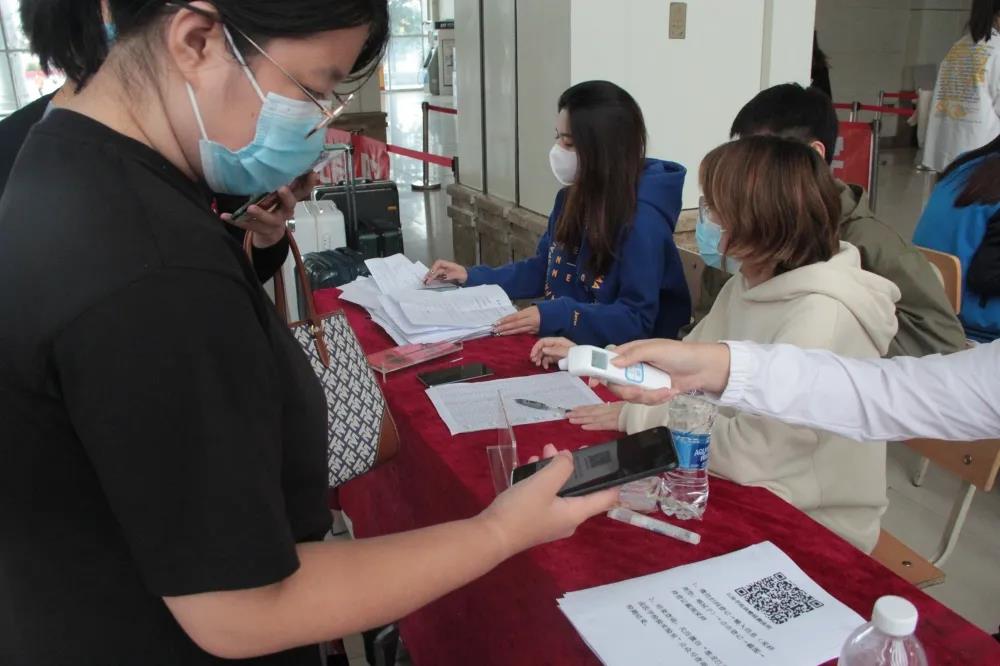 志愿者活动如火如荼进行,他们指引明确,服务贴心,随处可见志愿者们亲切的笑脸、悉心的问候,此刻的他们用实际行动践行着志愿服务精神,为返校的同学们架起了一道防疫安全线。截止12日下午六点,在志愿者们的共同努力下,2019级、2020级全体学生已经顺利返校。