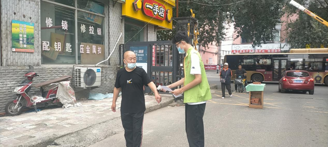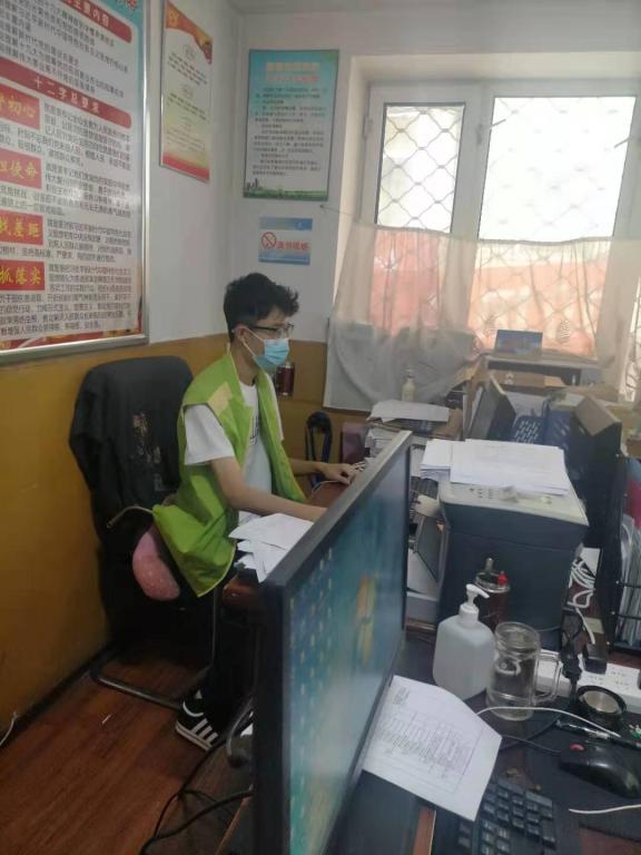 陈欣屿同学对待工作的认真积极,他说:志愿者从三四个到五六个,到十几个到几十个,渐渐汇成了一道流动的风景。我很光荣我是他们的一员,有了志愿者默默支持着街道和居委会繁重的工作,让疫情期间的小区逐渐恢复平静。