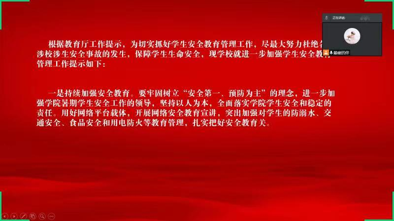 为了进一步加强疫情防控,强化学校安全工作及暑假期间安全管理,学院按照省教育厅和学校的有关要求,认真组织落实,层层推进,要求各年级进行主题教育班会,又重点对2018级“3+1”综合实习的安全工作重点进行了部署,我院于7月29日召开线上主题教育班会,20级,19级,18级全体分别参加腾讯线上会议,会议由各年级辅导员主持会议。