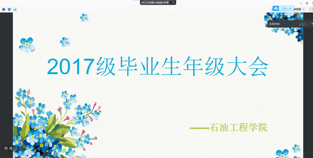 王昱老师首先传达了我省高校毕业生就业工作会议和学校毕业生就业工作推进会的有关内容,然后向学生全文宣读《欧博abg游戏登录入口2021年毕业生返校工作方案》和《石油工程学院毕业生文明离校工作方案》的有关内容。随后,王老师又结合毕业年级实际从“求职之路”、“就业相关资料”及“如何申请返校和文明离校”等方面进行了详细的讲解。“求职之路上,各位同学应当秉持先就业、再择业的理念,学会分析就业现状,树立正确就业观,走好就业每一步;此外,她又强调了毕业生档案的重要作用。会上王昱重点向学生强调了毕业生申请返校的各项流程,希望各位毕业生严格遵守学校的各项规章制度,顺利完成毕业生离校前的各项工作。